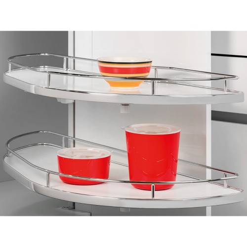 Right hand pull out corner organiser designed for a low unit with a minimum width of 900mm and 450mm door (left hand version available)