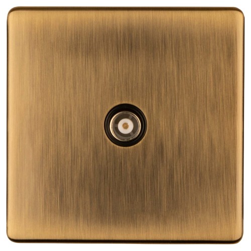 • Eurolite Concealed 1 Gang Screwless Flat Plate Isolated TV Coaxial Socket - Antique Brass/Black