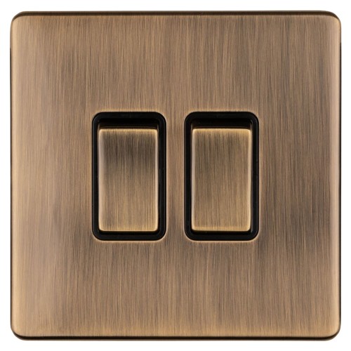 • Eurolite Concealed 10A 2 Gang 2 Way Screwless Flat Plate Light Switch - Antique Brass/Black