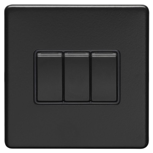 Eurolite Concealed 10A 3 Gang 2 Way Screwless Flat Plate Light Switch - Matt Black/Black