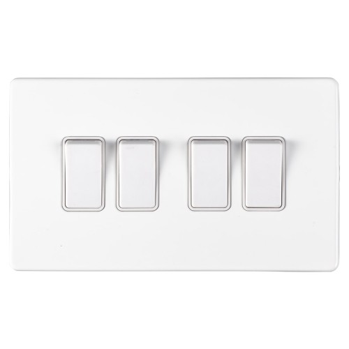 Eurolite Concealed 10A 4 Gang 2 Way Screwless Flat Plate Light Switch - Matt White