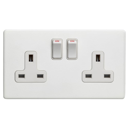 • Eurolite Concealed 13A 2 Gang Screwless Flat Plate DP Switched Socket - Matt White