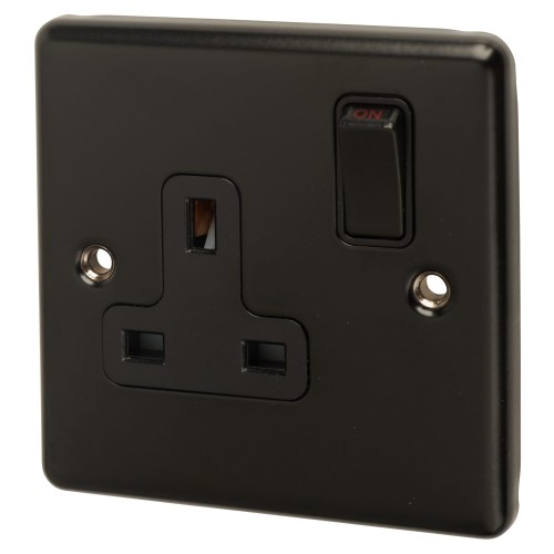 • Eurolite Enhance Decorative 13A 1 Gang Double Pole Switched Socket - Matt Black with Black Inserts