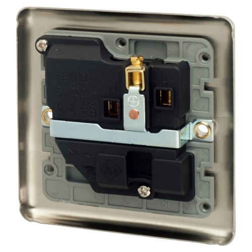• Eurolite Enhance Decorative 13A 1 Gang Double Pole Switched Socket - Satin Steel with Grey Inserts