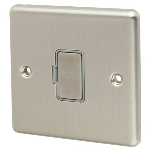 • Eurolite Enhance Decorative 13A 1 Gang Unswitched Fused Spur - Satin Steel with Grey Inserts