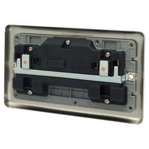 • Eurolite Enhance Decorative 13A 2 Gang Double Pole Switched Socket - Satin Steel with Grey Inserts
