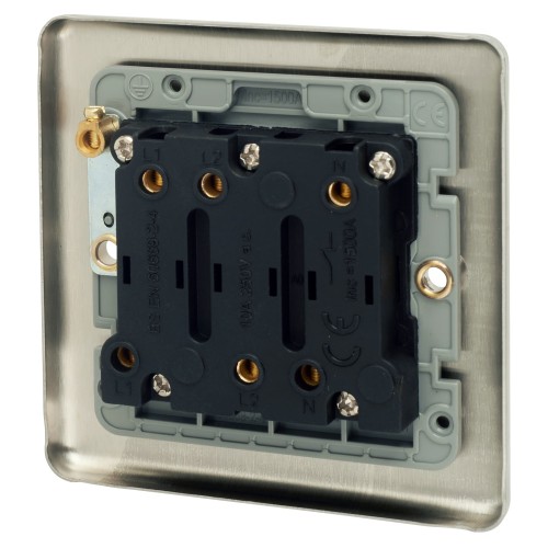 • Eurolite Enhance Decorative 6A 1 Gang Triple Pole Fan Isolator - Satin Steel with Grey Inserts