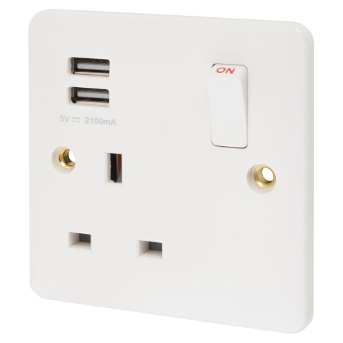 • Exel 13A 1 Gang USB Socket with 2 x USB - 2.1A - White