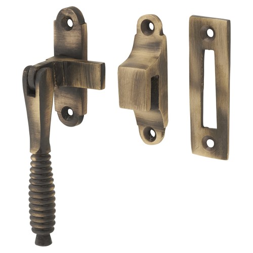 • Exel Cast Reeded Mortice & Hook Plate Casement Window Fastener - Reversible - Antique Brass