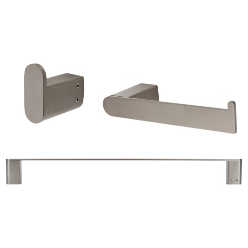 • Set includes 1 x toilet roll holder - 180 x 65 x 35mm, 1 x robe hook - 65 x 60 x 26mm, 1 x towel rail - 600 x 65 x 25mm