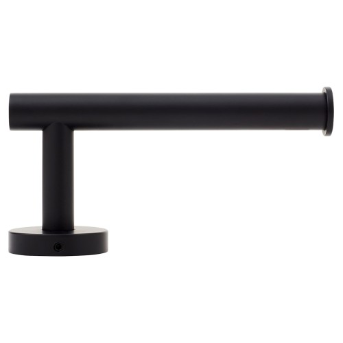 Matt black toilet roll holder that is part of the Exel round bathroom range, it provides a robust combination of functionality and design