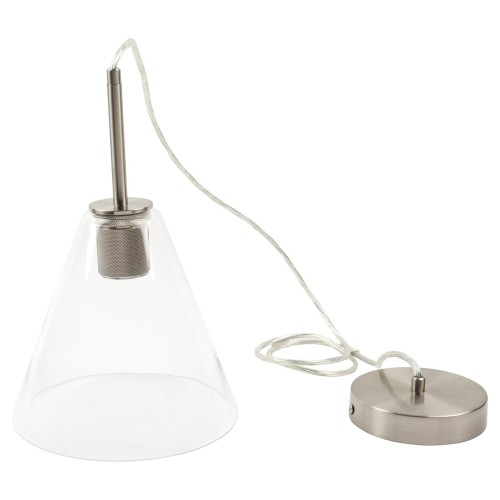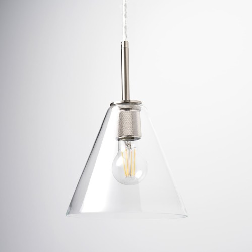 • Exel Noord Knurled Ceiling Light Pendant - Satin Nickel Fittings and Hooded Clear Glass Shade
