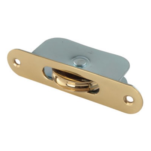 Exel Radius Axle Sash Window Pulley - 44mm Curved Metal Wheel - Polished Brass