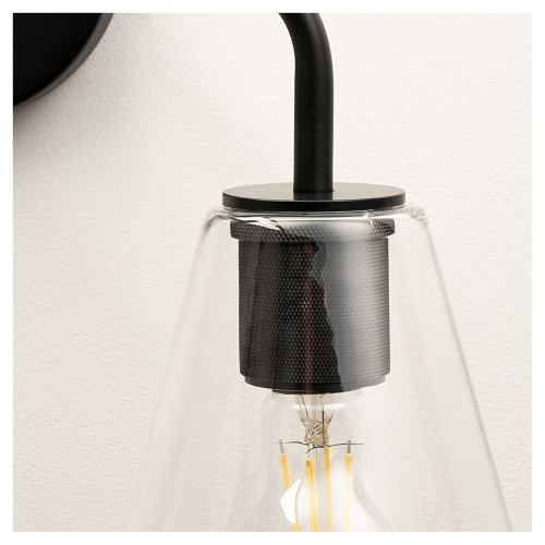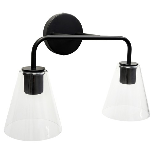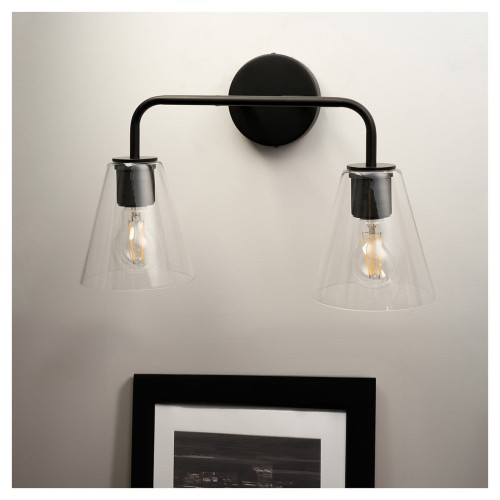 • Exel Sabana Knurled 2 Light Indoor Wall Light - Matt Black Fittings & Hooded Clear Glass Shades