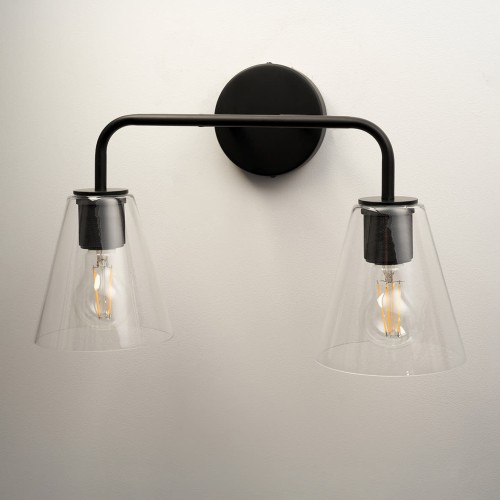 Exel Sabana Knurled 2 Light Indoor Wall Light - Matt Black Fittings & Hooded Clear Glass Shades