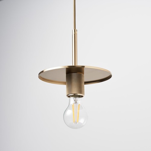 Contemporary and stylish knurled plate ceiling light pendant in a satin brass finish