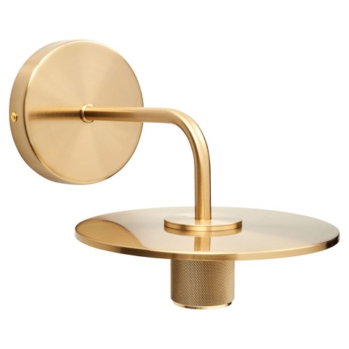 Contemporary and stylish knurled indoor plate wall light in a satin brass finish