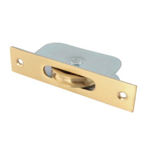 Exel Square Axle Sash Window Pulley - 44mm Curved Metal Wheel - Satin Brass