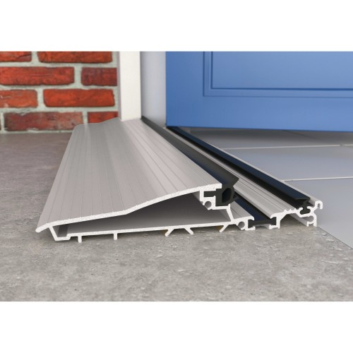 Exitex Mobility Threshold with Long Ramp - 1000mm Length - Inward Opening Doors - Mill Aluminium