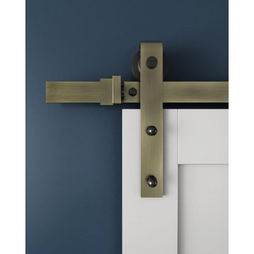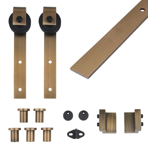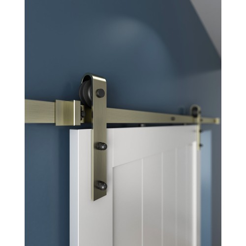 • FGV Barn Strap Sliding Door Gear - Face Mounted - 2000mm Track - 120kg Max Door Weight - Ant Brass