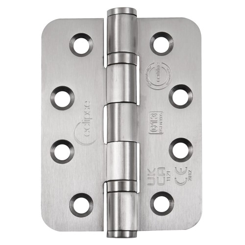 Eclipse Radius Ball Bearing Grade 13 Butt Fire Door Hinge - 102 x 76 x 3mm - Satin Stainless - Pair