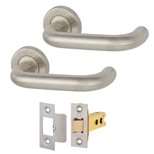 • Medium Duty Latch Door Handle on Rose Fire Door Kit - Power Size 2-4 - Stainless Steel