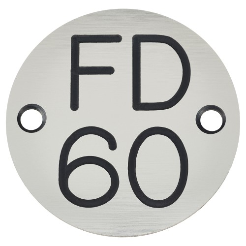 • Exel FD60 Fire Door Sign - Drilled - 50mm Diameter - Rigid Plastic - Silver