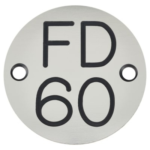 Exel FD60 Fire Door Sign - Drilled - 50mm Diameter - Rigid Plastic - Silver