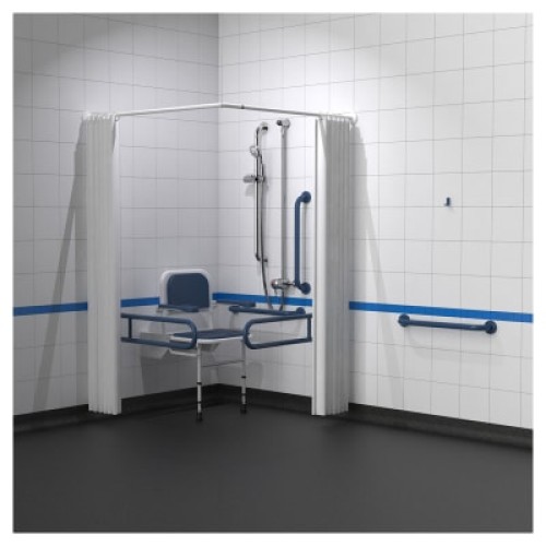 Kit contains: 1 x Exposed TMV3 thermostatic sequential shower kit, 2 x 800mm Lift and lock stainless steel hinged grab rails, 3 x 600mm Stainless steel grab rails, 1 x 450mm Stainless steel grab rail, 1 x 900mm Stainless steel grab rail, 1 x Slider bracket, 1 x 1200mm x 1200mm Shower rail, 2 x 1800mm x 2000mm Weighted shower curtains, 1 x Doc M shower seat with legs and 1 x Robe hook