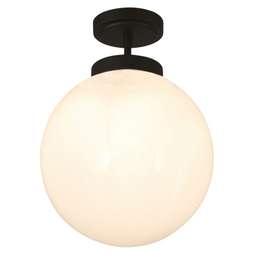 Forum Spa Porto Semi Flush LED Bathroom Ceiling Light - IP44 - Matt Black & Opal Shade