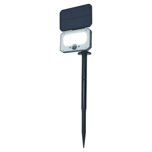 Forum Zink Bradley 3W LED Solar Wall & Ground Floodlight with Spike & PIR - IP54 - 6500K - Black