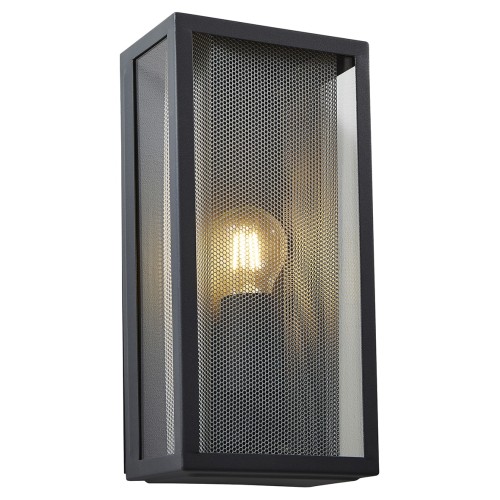 Forum Zink Cuba Outdoor Wall Lantern Light - IP44 - Anthracite with Silver Mesh Insert
