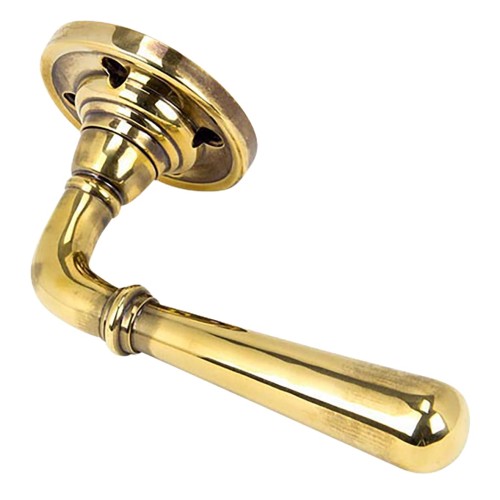 From The Anvil Aged Brass Door Handles on Round Fixed Rose - Newbury Range