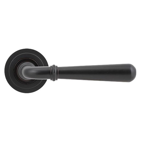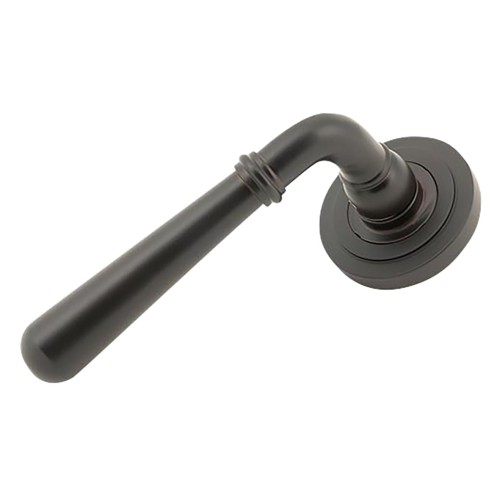 From The Anvil Aged Bronze Door Handles on Round Art Deco Rose - Newbury Range