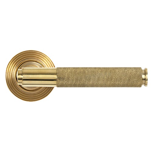 • From The Anvil Polished Brass Knurled Door Handles on Round Beehive Rose - Brompton Range