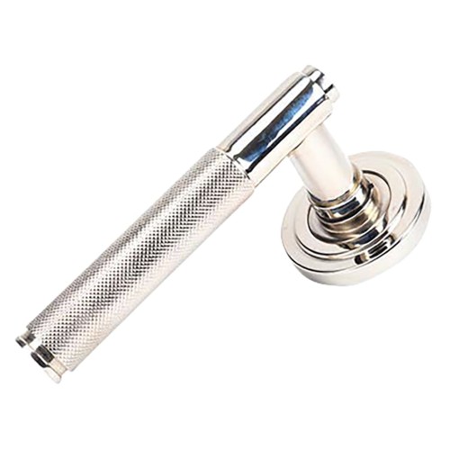 From The Anvil Polished Nickel Knurled Door Handles on Round Art Deco Rose - Brompton Range