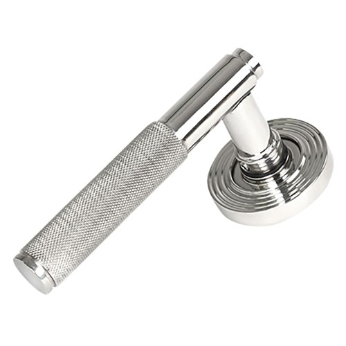 From The Anvil Polished Stainless Steel Knurled Door Handles on Round Beehive Rose - Brompton Range