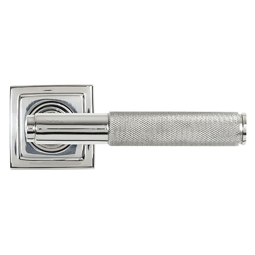From The Anvil Polished Stainless Steel Knurled Door Handles on Square Rose - Brompton Range