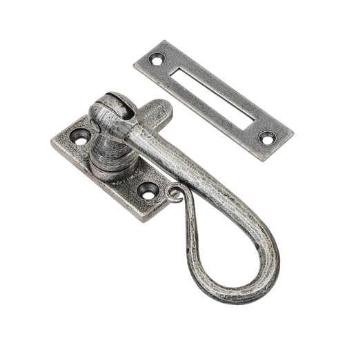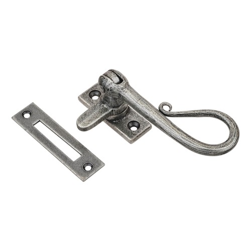 From The Anvil Shepherd's Crook Mortice Plate Casement Window Fastener - Reversible - Pewter