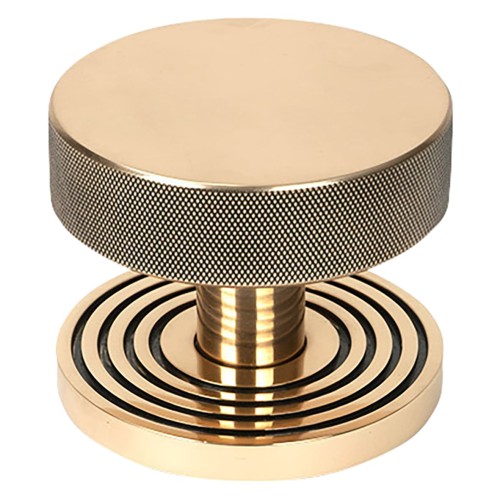 From The Anvil Brompton Round Knurled Centre Door Knob on Beehive Rose - 90mm Rose - Polished Bronze