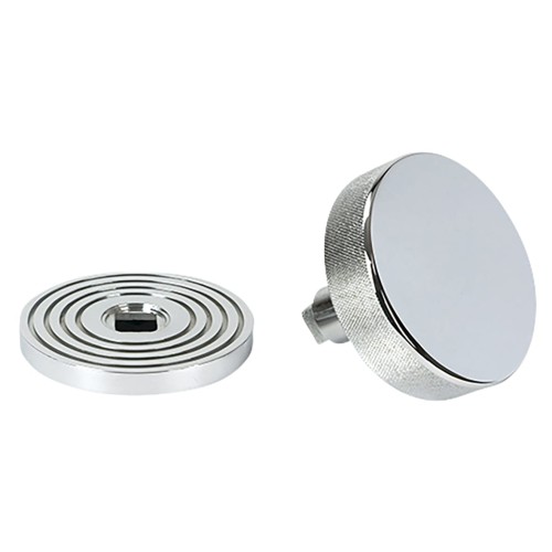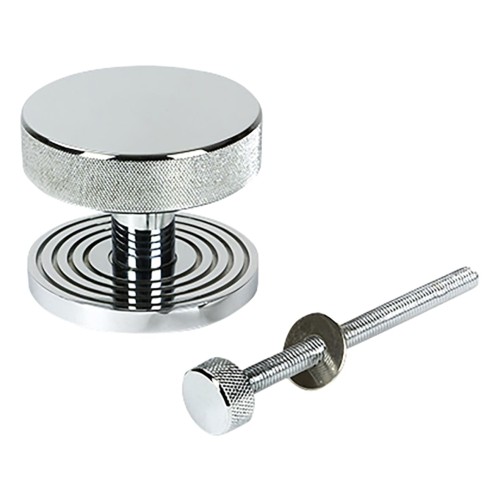 • From The Anvil Brompton Round Knurled Centre Door Knob on Beehive Rose - 90mm Rose - Polished Chrome