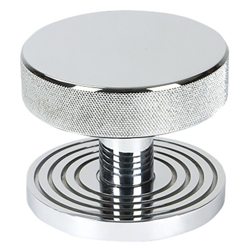 From The Anvil Brompton Round Knurled Centre Door Knob on Beehive Rose - 90mm Rose - Polished Chrome