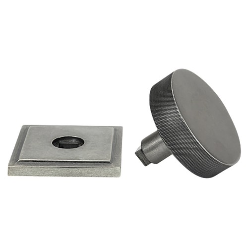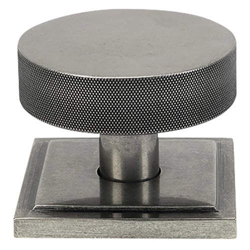 From The Anvil Brompton Round Knurled Centre Door Knob on Square Rose - 90 x 90mm Rose - Pewter