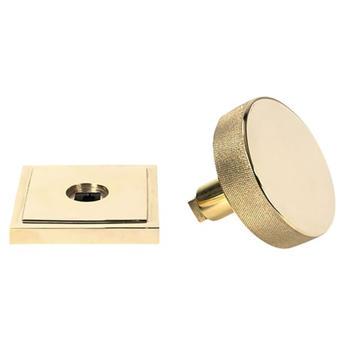 • From The Anvil Brompton Round Knurled Centre Door Knob on Square Rose - 90 x 90mm Rose - Pol Brass