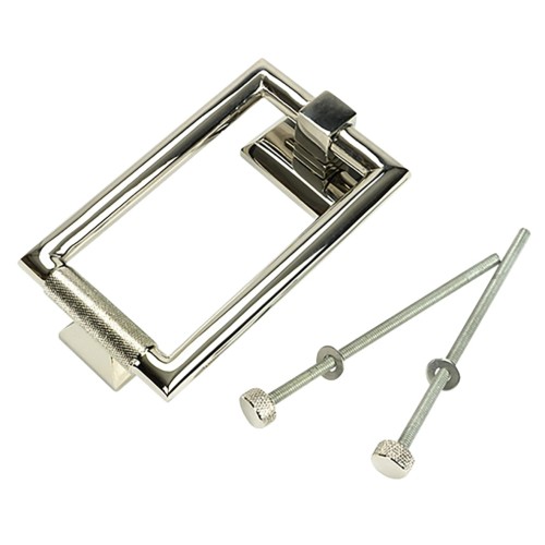 This polished nickel door knocker is manufactured from a solid brass base with a high-quality plating