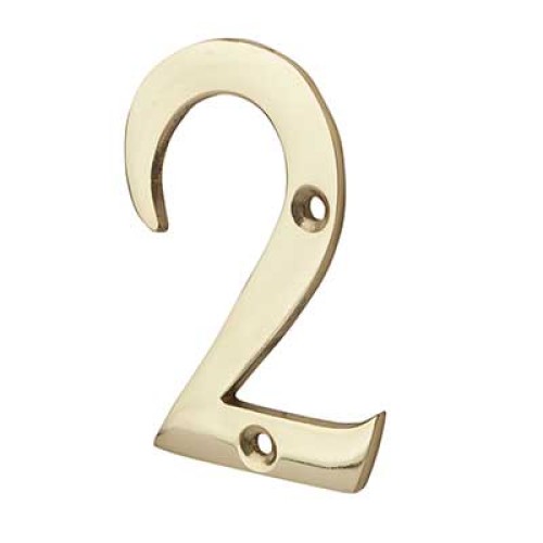 76mm Screw Fix Door Numeral - 2 - Polished Brass