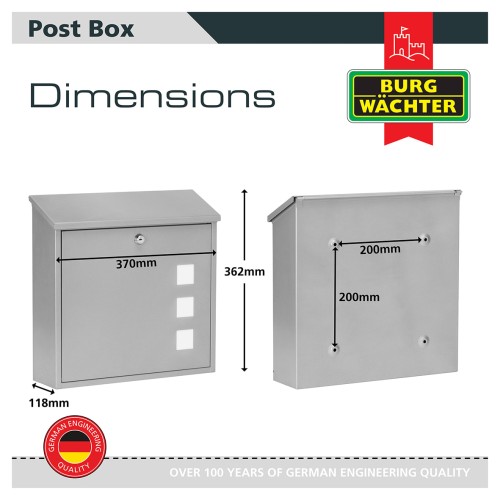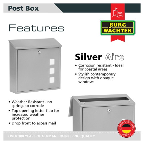• Burg Wachter Aire Postbox - 370 x 364 x 114mm - Silver