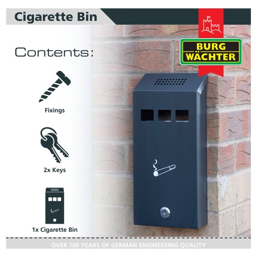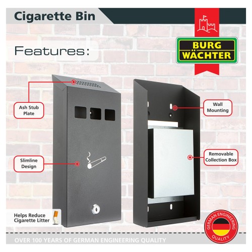 • Burg Wachter CIG1 Compact Cigarette Bin - 147 x 323 x 60mm - Black