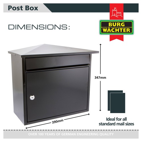 Burg Wachter Mersey Mailbox - 359 x 349 x 206mm - Black