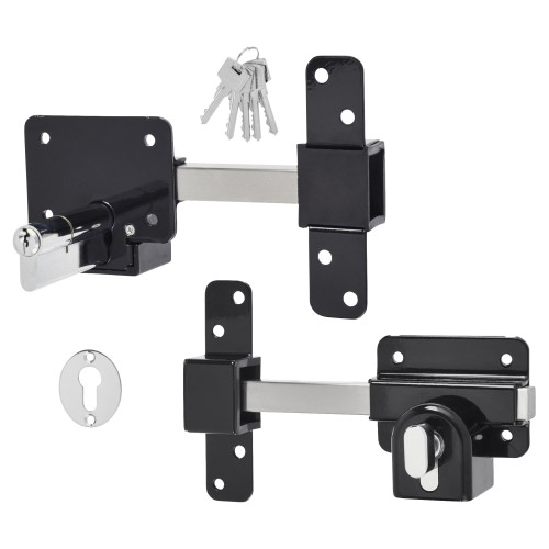 • Operates and locks with a key one side and thumbturn the other side of the gate